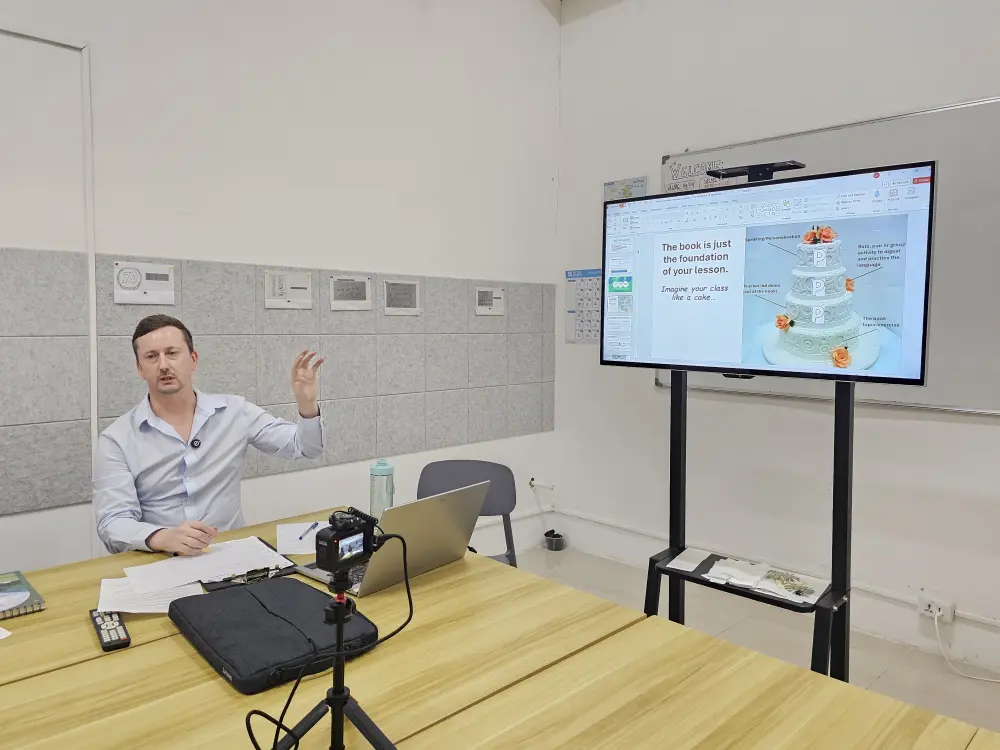 講師は、私たちの訪問時にアカデミックマネージャーを担当されていたクリス先生です。